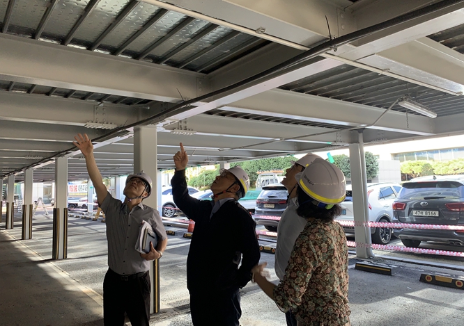 이날 점검은 조익문 사장이 직접 본사 사옥 환승주차장 시설물 보수 공사와 남광주역 외부 출입구 캐노피 개선 작업 현장을 찾아 공정 추진 상황과 안전 장비 유지관리 상태을 면밀히 살폈다.