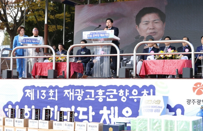 이날 체육대회에는 공영민 군수를 비롯해 광주지역 기관·단체장과 고흥군 읍·면 기관단체장, 재광주고흥군향우회원 등 1,000여 명이 참석해 고향의 정을 나누고 향우 간 우의를 다지는 뜻깊은 시간을 가졌다.
