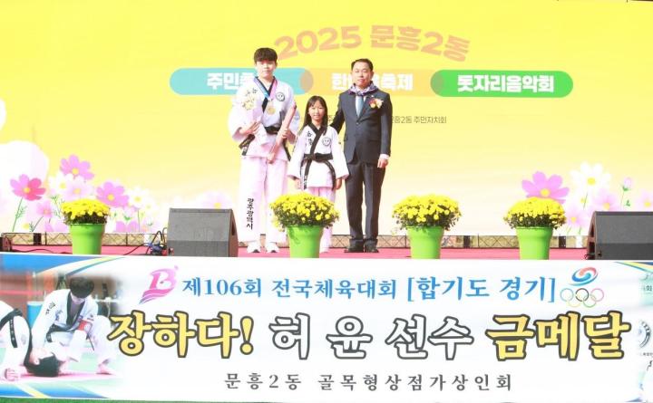 이 날 청소년 허 윤 부대장(문흥2동)은 제106회 전국체육대회 합기도 경기에서 금메달을 수상하여 문흥동의 자랑이라며 주민자치회 주관으로 시상식이 진행되었다.