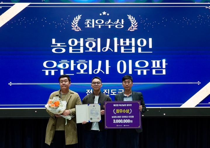 신승환 (유)이유팜 대표는 “그동안 쌓아온 노력과 정성을 인정받아 큰 보람을 느낀다”라며, “앞으로도 깨끗한 축산환경을 유지하며, 지역 사회와 함께 성장하는 농장이 되도록 최선을 다하겠다”라고 소감을 밝혔다.