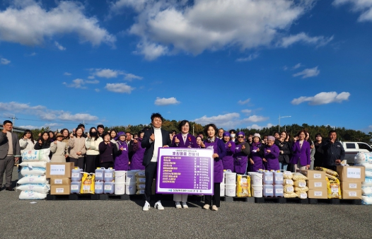 신안군에 따르면 21일 신안군공설운동장에서 신안군여성단체협의회 회원과 관내 사회복지시설 종사자 등 100여 명이 참석한 가운데 ‘2025 사랑의 김장재료 후원 물품 전달식’을 진행했다.
