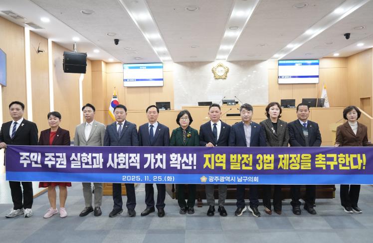 이에, 남구의회 의원들은 ▲'마을공동체활성화기본법'제정을 통한 주민주도 공동체 활성화의 법적 근거 마련 ▲'주민자치회 법제화'를 즉각 추진으로 생활 속 민주주의의 토대 확립 ▲'사회연대경제기본법' 제정으로 협동과 연대의 경제질서 제도화 ▲법 제정 이후 지방정부가 현장에서 정책을 실행할 수 있도록 정부의 재정과 제도적 지원 강화를 촉구했다.