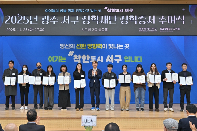 박찬갑 이사장은 “장학생 여러분이 오늘 받은 따뜻한 마음을 언젠가 후배들에게 나눠주길 바란다”며 “앞으로도 서구장학재단은 학생 한 명 한 명이 자신의 꿈을 펼칠 수 있도록 곁에서 응원하겠다”고 말했다.