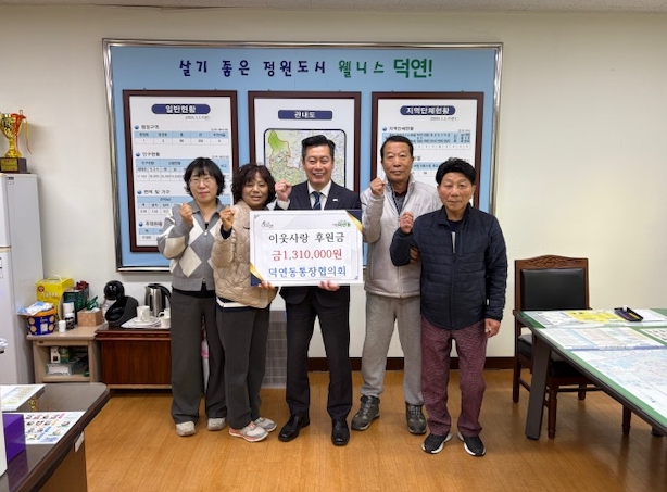 류영권 덕연동장은 “행정의 촘촘함에 주민의 따뜻함이 더해지면 사각지대는 빈틈이 아니라 연결의 자리가 될 것”이라며, “기탁금은 도움이 필요한 분들께 필요한 물품을 신속하고 정확하게 전달하겠다”고 말했다.