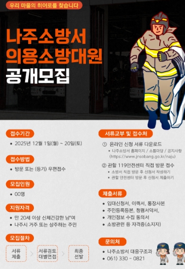 나주소방서 신향식 서장은 “의용소방대는 지역 안전의 최전선에서 다양한 역할을 수행하는 중요한 조직”이라며 “지역사회 안전에 기여하고자 하는 시민들의 많은 관심과 참여를 바란다”고 말했다.