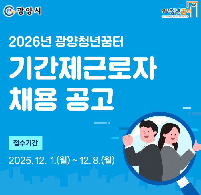 지원서는 12월 1일부터 8일까지 광양시청 3층 청년일자리과에 방문 제출해야 하며, 우편·온라인·대리접수는 불가하다.