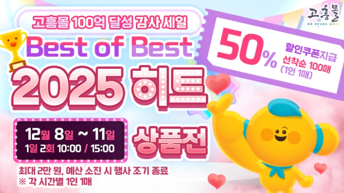 또한 앞으로도 계절별 기획전, 신규 브랜드 발굴, 상품 품질 고도화 등 지속형 프로그램을 추진해 고흥몰의 성장 기반을 더욱 강화해 나갈 계획이다.
