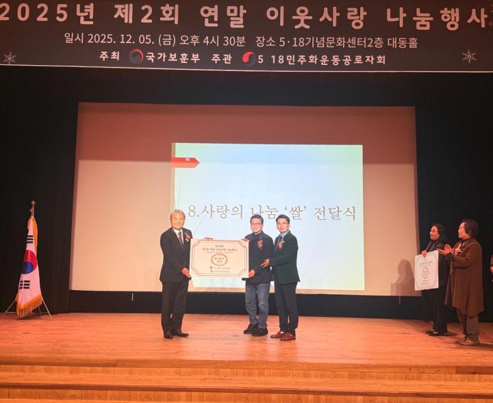 이날 자리에는 5·18민주화운동공로자회 윤남식 회장, 5·18민주화운동 전국임원진, (사)사랑의희망은행 광주전남조직위원회 양용현 회장, 김유홍 자문위원 및 성곡문화재단이사장, 박수영 체육분과위원장 등 지역 사회 주요 인사들이 참석해 연말 나눔의 의미를 함께 나눴다.