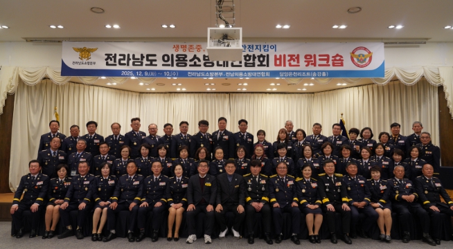 9~10일 담양리조트에서 개최된 워크숍에는 소방본부장 등 소방공무원 및 의용소방대 연합회장단 등 80여명이 참석했으며 `25년도 주요성과와 `26년도 월별 추진계획 안내에 대한 의견을 나눴다.