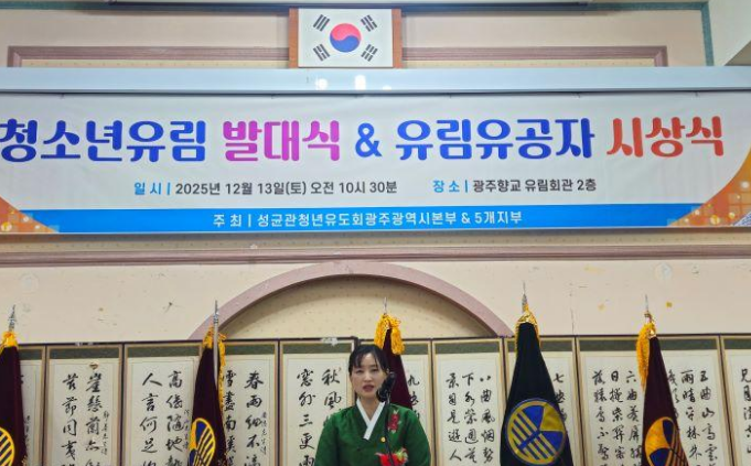 박정하 성균관청년유도회 광주광역시본부 회장은 “청소년 유림부는 인(仁)·의(義)·예(禮)·효(孝)를 생활 속에서 실천하며, 가정과 사회를 잇는 도덕적 주체로 성장해야 한다”며 “미래 세대가 바른 인성과 공동체 의식을 갖춘 인재로 성장할 수 있도록 지속적으로 지원하겠다”고 밝혔다.