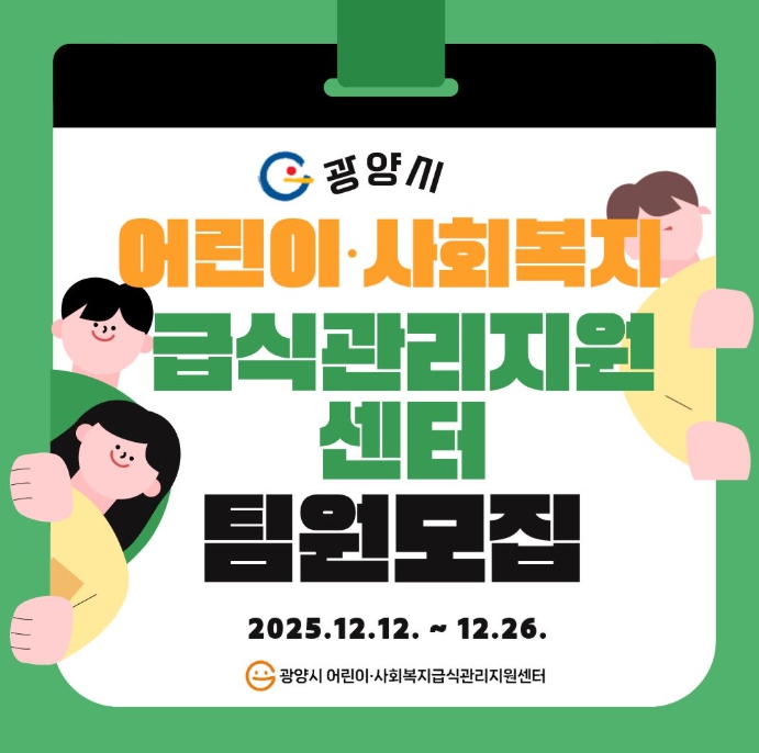 광양시 관계자는 “이번 채용은 단체급식의 안전성을 확보하고, 광양시 어린이·어르신·장애인의 건강 증진을 도모하기 위한 것”이라며 “영양·위생 분야에 관심 있는 분들의 많은 참여를 기대한다”고 말했다.