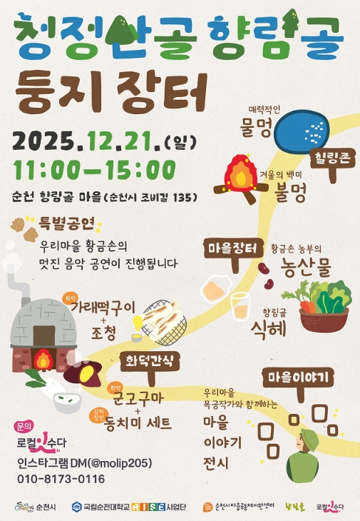 이번 행사는 국립순천대학교 RISE사업단과 순천시마을공동체지원센터가 추진 중인 ‘우리동네 리빙랩 프로젝트’ 과정에서 도출된 결과 일부를 주민들과 공유하고, 향림골을 찾는 시민들에게 도심 근교 청정 산골마을의 매력과 주민 주도형 프로그램을 소개하기 위해 마련됐다.