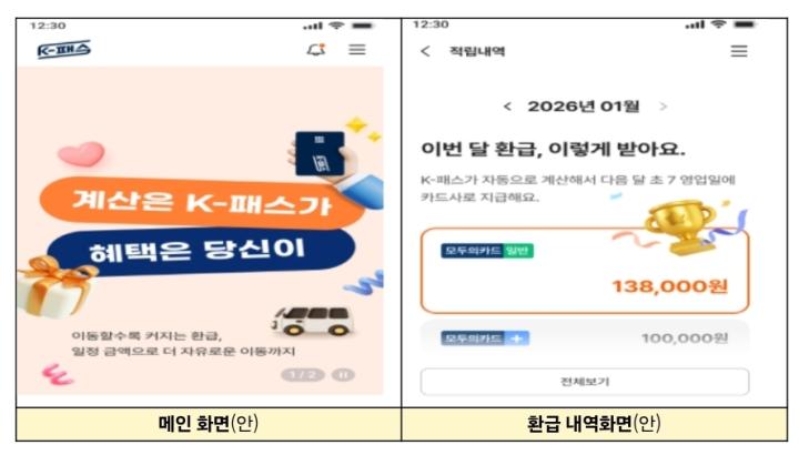 K-패스 앱·누리집에서 이용자의 환급 금액(예상금액 포함)을 쉽게 확인할 수 있도록 이용자 화면도 개선한다.