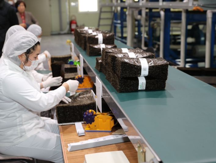신안 소재 수출업체 ㈜신안천사김은 최근 미국 코스트코의 조미김 주문량 증가에 맞춰 적기 생산과 납품을 이어가고 있다.