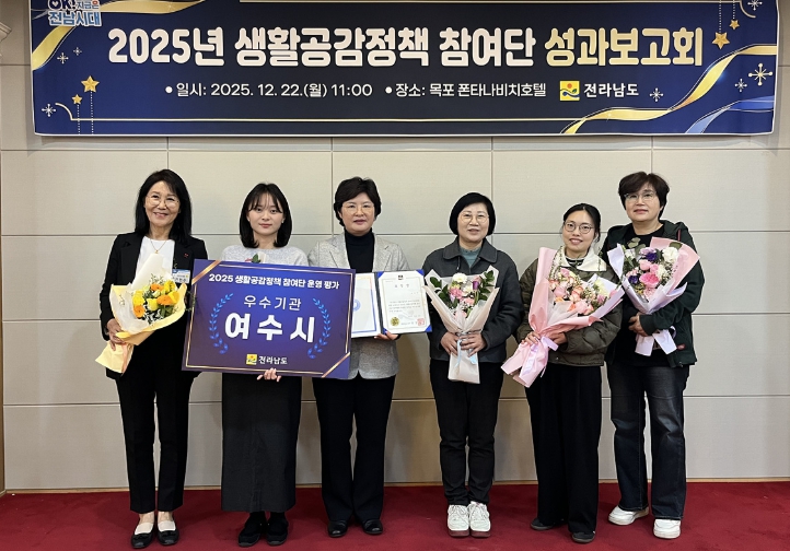 시 관계자는 “이번 수상은 여수시 생활공감정책 참여단과 함께 추진한 참여단 활성화를 위한 노력이 인정받은 결과”라며 “앞으로도 참여단이 정책 모니터링과 시정 발전에 도움이 되는 다양한 정책 제안을 활발하게 추진할 수 있도록 적극 지원해 나가겠다”고 말했다.