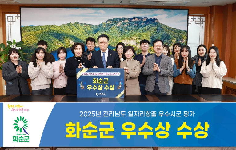 지난해 최우수상에 이어 2년 연속 상위권 성과로, 24일 여수엑스포컨벤션센터에서 화순군의 일자리 정책 추진 성과를 다시 한번 인정받았다.