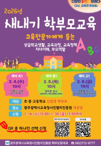 4일에는 초등 신입생 학부모를 대상으로 광주수창초등학교 이화신 교사가 ‘초등학교 1학년 길라잡이’를 주제로 입학 준비사항과 학교생활 적응 정보를 제공한다.