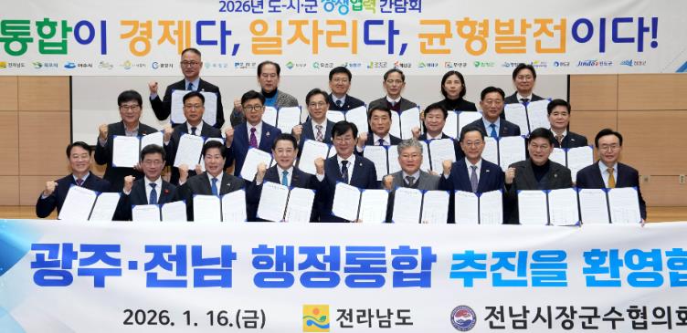 김영록 지사와 전남시장군수협의회는 광주·전남 행정통합 환영 성명서를 발표하고, 초광역 경제 중심지 도약을 위한 행정 통합에 적극 협력할 뜻을 밝혔다.