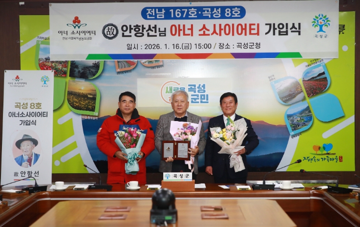 故안항선 님은 이번 가입을 통해 곡성군 제8호이자 전라남도 제167호 아너 소사이어티 회원으로 이름을 올렸다.