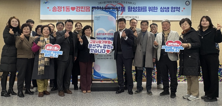 송정1동 대회의실에서 열린 이날 협약식에는 임창복 읍장을 비롯한 이현교 강진읍 주민자치회장과 박희영 동장, 기영철 송정1동 주민자치회장 등 20여 명의 양 지자체 관계자들이 참석해 지역 상생과 나눔의 가치를 실천하는 뜻깊은 시간을 가졌다.