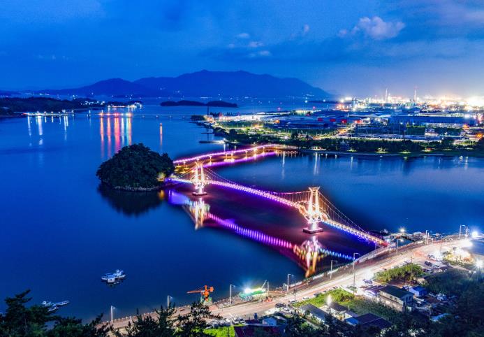 대교 양쪽으로 펼쳐진 광양제철소와 광양항은 낮에는 웅장한 스케일을, 밤에는 찬란한 장관을 선사하며 광양의 역동적 미래를 강렬히 각인시킨다.