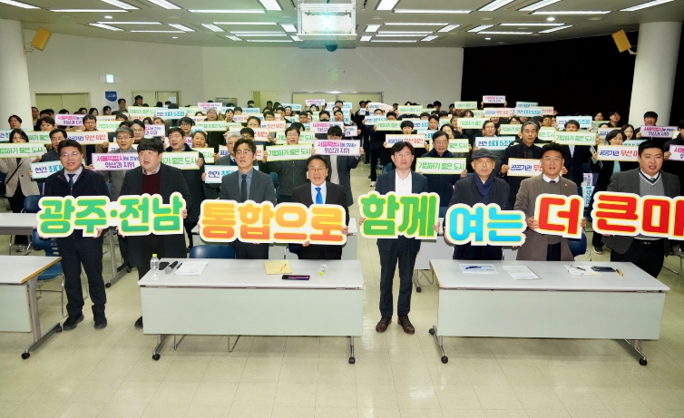 강기정 광주시장은 “특별법이 이달 중 국회를 통과하면 7월1일 통합특별시가 출범한다”며 “광주전남 통합은 신경제특별시의 새로운 출발이고, 이 과정에서 기존의 산업을 지킴과 동시에 첨단산업을 키워 광주전남의 산업 구조를 새 판이 짜여질 것이다. 인서울이 아닌 인광주, 인전남광주의 시대를 여는 대한민국 새로운 성장 극을 만들기 위해 지혜를 모아 달라”고 밝혔다.