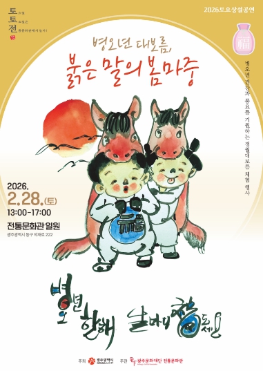전통문화관 — '병오년 대보름, 붉은 말의 봄마중' 오후 1시, 시 무형유산 보유단체 광산농악보존회가 꽹과리·장구·북·징의 풍물 가락과 함께 전통문화관 일대를 행진하는 기획공연 '붉은 말의 길놀이'로 행사의 문을 열고, 방문객 모두의 만복과 평안을 기원하는 대보름의 첫소리다.