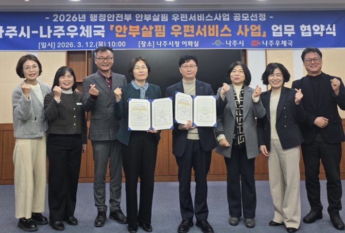 나주시는 행정안전부 ‘2026년 안부살핌 우편서비스 사업’ 공모에 선정돼 4월에 대상자를 선정하고 오는 5월부터 사업을 본격 시행할 계획이라고 13일 밝혔다.