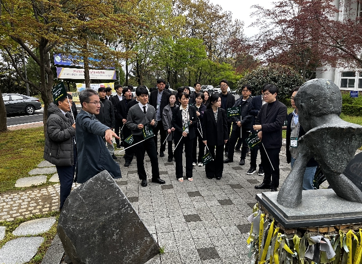13일 전남대학교에 따르면, 신임교원들은 지난 10일 ‘5·18 민주인권평화 민주길 걷기’에 참여했다. 이날 신임교원들은 국립5·18민주묘지, 옛 전남도청, 전남대학교 민주길 등 5·18 민주화운동 주요 현장을 직접 체험했다. 이어 현장 탐방과 특강을 통해 민주·인권·평화의 의미를 되새겼다.