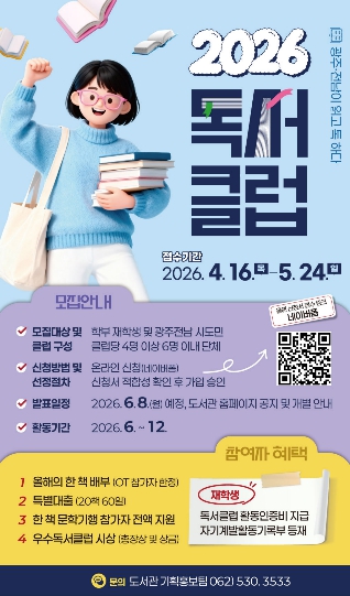 박경환 전남대학교 도서관장은 “독서클럽이 책을 매개로 지역 공동체가 깊이 있게 소통하고 함께 성장하는 중요한 역할을 하고 있다.”며, “광주·전남 지역민과 학생들의 열정적인 참여를 기대한다.”고 밝혔다.