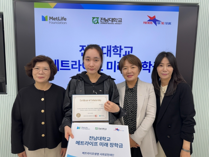 전남대학교는 지난 4월 10일 교내 도서관 별관 OCR회의실에서 메트라이프생명 사회공헌재단의 ‘미래장학금 수여식’을 개최했다고 21일 밝혔다.