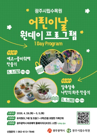김희석 수목원·정원사업소장은 “어린이날을 맞아 아이들이 자연 속에서 즐겁게 식물과 친해질 수 있도록 프로그램을 준비했다”며 “가족이 함께 체험활동을 하며 의미 있는 시간을 보내길 바란다”고 말했다.