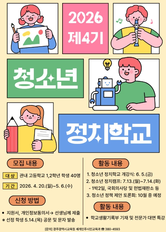 청소년 정치학교는 학생들이 사회문제에 관심을 갖고 스스로 탐구하며 정책을 제안하는 참여형 프로그램이다.