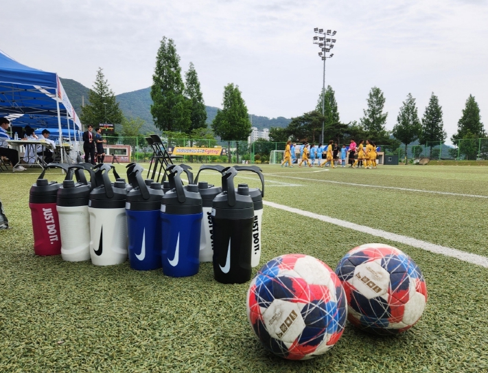 순천중앙초 남초 축구부는 이번 대회 참가 기간 일회용 생수병 대신 다회용 물통을 사용하는 ESG 실천으로 눈길을 끌었다.