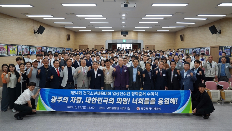 전갑수 체육회장은 “광주 대표선수로서 최고의 경기력으로 입상한 선수들을 응원하고 격려하고자 장학증서를 수여했다. 선수단 모두 축하한다.”며 “어린 학생들이 올바르게 성장할 수 있도록 교육청, 학교, 종목단체 및 체육지도자 등이 하나 돼 최선을 다해 주시기 바란다.”고 격려했다.