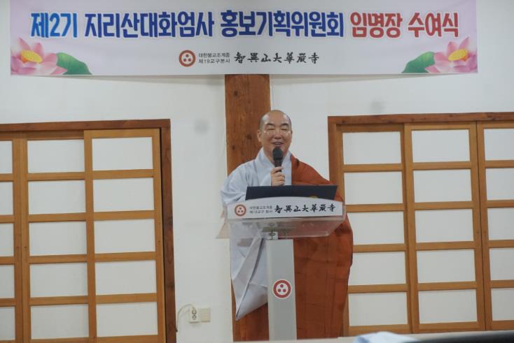 우석주지스님은 임명장 수여식에 앞서 “지난 덕문스님께서 만들어 놓으신 홍보기획위원회가 성공적으로 마무리됐음을 매우 기쁘게 생각하며, 1기 위원님들께도 깊은 감사의 말씀을 전했다. 그리고 오늘 제2기 홍보기획위원회 여러분께 임명장을 수여하게 된 것은 지리산 대화엄사의 새로운 문화 가치를 창조하는 첫걸음이자, 우리 대화엄사가 국민 여러분과 한층 더 가까이 다가가는 소중한 기회로 만들겠다라고 각오를 전했다.”