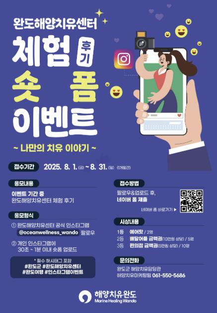 참여 방법은 먼저 완도해양치유센터 공식 인스타그램(@오션웰니스완도)을 팔로우해야 한다.