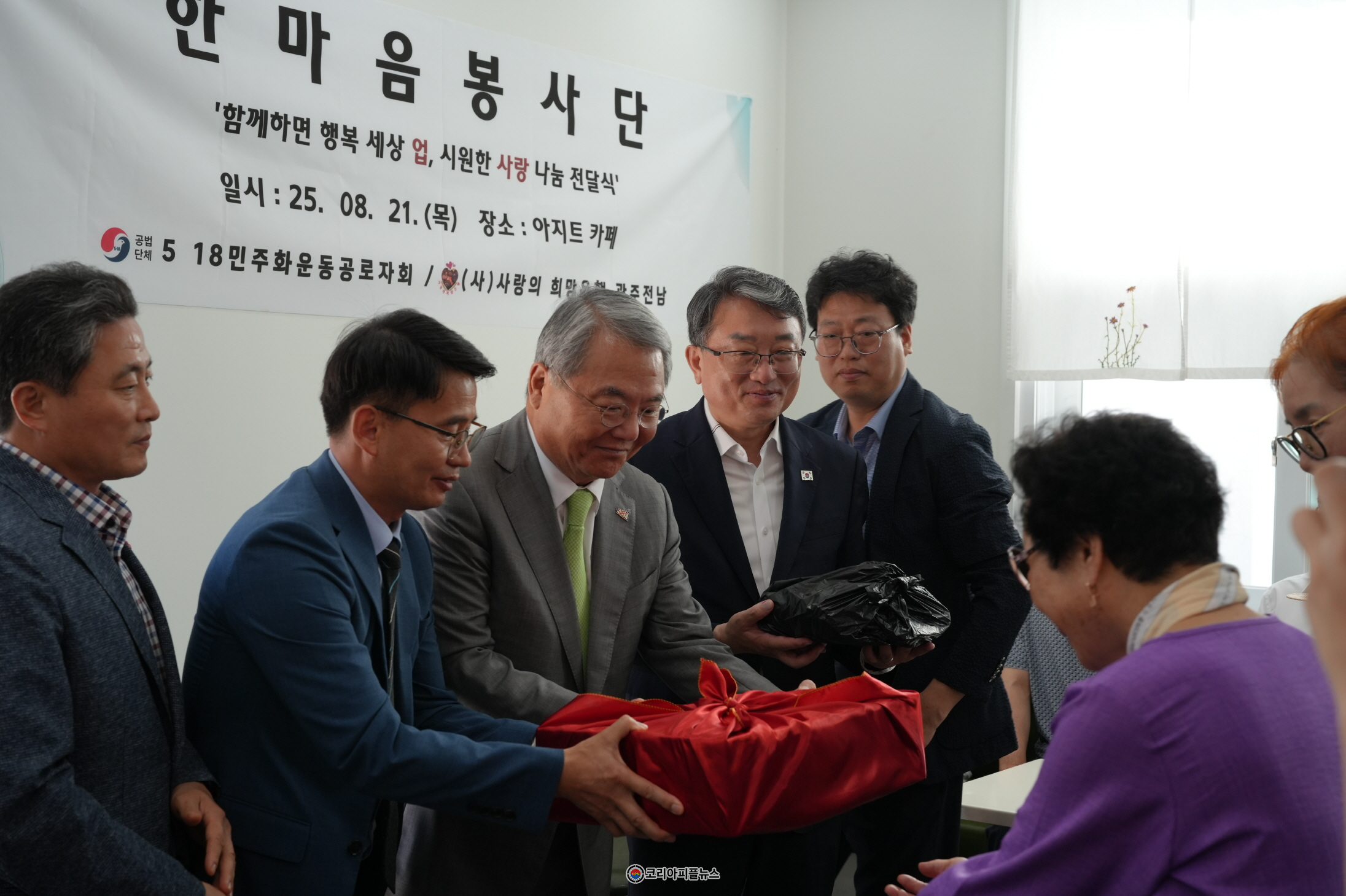 이날 전달식에는 공법단체 5·18민주화운동공로자회 윤남식 회장, 심정보 상임부회장, (사)사랑의희망은행 광주·전남 양용현 회장, 윤영민 지역경제연구소장 겸 (사)사랑의희망은행 광주·전남 자문위원장, (사)성곡문화재단 이사장 겸 지역민생경제실천운동본부 회장 김유홍, (사)광주 남구장애인협회 김정술 회장 등 주요 단체 임원과 나눔 대상자 등 50여 명이 함께 자리해 뜻을 더했다.