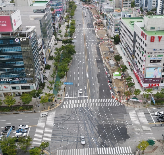 실제 지난 7월말 기준 도로 개방률은 6.3㎞, 43%에 머물렀으나, 상무역 주변 등 3곳 1.8㎞구간의 도로 포장 및 교통안전시설물 정비를 완료, 8월말 현재 8.1㎞, 56%까지 향상됐다.
