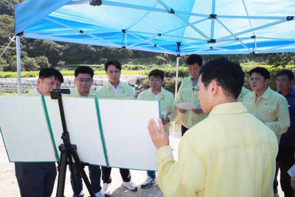 현장에서 관련 부서장(주민안전과장, 건설교통실장)으로부터 특별재난지역 선포 현황과 장복천 복구 계획에 대한 설명을 들은 후 수해 피해 주민을 위로했다.