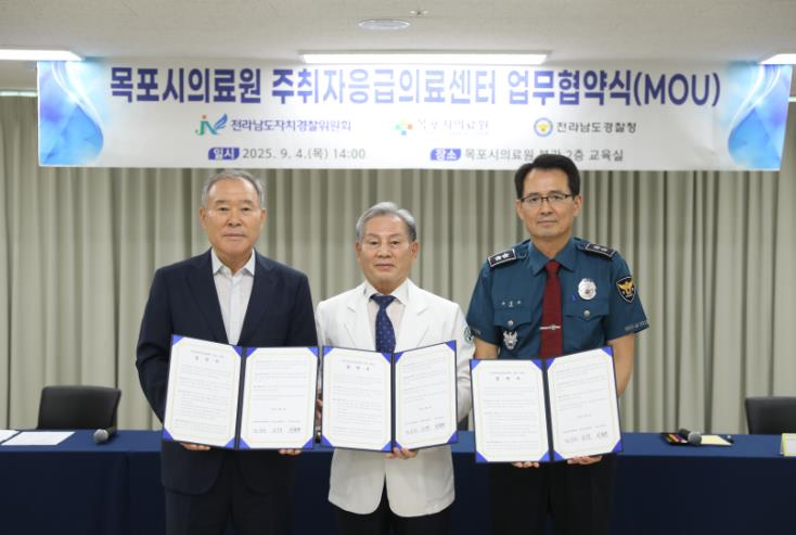전남경찰 모상묘 청장, 전남자치경찰위원회 정순관 위원장, 목포시의료원 최형호 원장 등이 참석한 가운데 진행된 업무협약식을 통해,