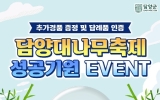 여수 코리아피플뉴스2026. 04.03[코리아피플뉴스]담양군이 ‘제25회 담양대나무축제’의 성공적인 개최를 기원하고 고향사랑기부 참여 문화를 확산시키기 위해 4월 6일부터 특별 이벤트를 진행한다. ‘제25회 담양대나무축제 성공기원’이벤트는 4월 6일부터 5월 15일까지 40일간 진행되며, 이벤트 기간 내 담양군에 10만 원 이상 기부하면 별도의 신청 절차 없이 자동으로 응모된다. 군은 추첨을 통해 총 90명의 기부자에게 담양딸기잼, 루비벨 토마토 등 담양의 정성이 담긴 추가 경품을 증정하며, 기부자들이 받은 답례품의 매력을 공유하는 ‘답례품 인증 이벤트’도 …