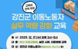 강진 코리아피플뉴스2025. 12.11[코리아피플뉴스]강진군이 이동노동자를 위한 맞춤형 교육 프로그램을 오는 17일과 20일 2회 간 진행하며 본격적인 교육 운영에 나선다. 이번 교육은 열악한 근로환경에 노출되기 쉬운 이동노동자에게 실질적인 도움을 주기 위한 것으로 고용노동부의 ‘노동약자 일터개선 지원사업’을 통해 근로자의 이익 보호와 직무 역량 향상에 초점을 맞췄다. 이동노동자란 배달라이더, 택시·대리기사, 택배·화물 종사자 등 일정한 작업장이 없는 상태에서 주로 이동하며 일하는 노동자를 말하며, 근로 환경과 법적 보호에 있어 사각지대에 놓이는 경우가 많다. …