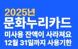 광주 코리아피플뉴스2025. 12.07[코리아피플뉴스]광주문화재단은 2025년 문화누리카드 사용기한이 12월 31일까지이며, 미사용 지원금은 자동 소멸한다고 밝혔다. 특히 연말까지 3만 원 이상 사용하지 않을 경우, 내년 자동 재충전 대상에서 제외될 수 있어 이용자의 주의가 필요하다. 올해 문화누리카드 지원금은 1인당 14만 원으로, 도서·영화·공연·테마파크·시외버스·KTX·체육시설·스포츠 용품·스포츠 관람·캠핑용품 등 다양한 분야에서 사용할 수 있다. 문화누리카드는 지역 축제에서도 활용할 수 있다. 올해 마지막 연계 축제인 ‘빛고을 사랑나눔 김장대전’에서는 김장…