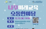 강진 코리아피플뉴스2025. 12.03[코리아피플뉴스]전라남도 나주시가 미래 교육 성과를 시민과 공유하는 ‘나주미래교육소통한마당’을 오는 12월 13일 한국에너지공과대학교 대강당에서 개최한다. 이번 행사는 올해 추진한 교육 프로그램의 성과를 나누고 학생과 학부모가 함께 참여하는 소통 중심의 교육 축제로 꾸며질 예정이다. 나주시와 나주교육진흥재단이 공동 주최하고 나주미래교육지원센터가 주관하는 이번 행사는 오후 2시 식전 공연인 나주이화유스오케스트라 연주를 시작으로 본격 진행된다. 행사에서는 나주교육진흥재단과 나주미래교육지원센터가 추진해 온 주요 사업의 경과보고, 교…