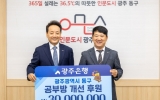 영광 코리아피플뉴스2025. 11.25[코리아피플뉴스]광주은행은 25일, 광주 동구청에서 ‘희망이 꽃피는 공부방’ 사업을 위한 후원금 3천만 원을 기탁했다고 밝혔다. 기탁식에는 광주은행 김재춘 부행장과 임택 동구청장 등 관계자들이 참석해 나눔의 의미를 함께했다. 이번 후원금은 동구 관내 지역아동센터 3개소의 환경 개선에 사용됐다. 아동 안전을 위한 방염 벽지 및 장판 교체, 학습용 책상·의자 교체는 물론 생활공간 내 수납시설 및 싱크대 개보수 등 시설 전반을 정비해 아동들이 보다 안전하고 쾌적한 환경에서 생활할 수 있도록 지원했다. ‘희망이 꽃피는 공부방’은 광…