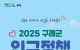 전남 코리아피플뉴스2025. 11.17[코리아피플뉴스]전남 구례군은 군민들의 생애주기 전반에 걸친 인구정책을 한눈에 볼 수 있는 ‘구례군 인구정책 가이드북’을 발간했다고 밝혔다. 가이드북은 △임신 · 출산 △영 · 유아 △아동 · 청소년 △청년 △중 · 장년 △노년 △공통 7개 분야, 174개 사업으로 구성되어 있으며, 별도의 분야별 색인을 포함하여 인구정책과 관련된 다양한 혜택을 체계적으로 정리했다. 각 정책의 지원 내용은 물론 신청방법과 문의처까지 구체적으로 안내해 실질적인 활용도를 높였다. 군민 누구나 쉽게 이해하고 필요한 정보를 즉시 찾을 수 있도록 구성…