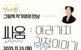 광양 코리아피플뉴스2025. 11.07[코리아피플뉴스]광양용강도서관은 오는 11월 23일 오후 2시, 마로극장에서 초등학교 1~3학년 어린이를 대상으로 그림책 『싸움』의 저자 민아원 작가와의 만남을 운영한다고 밝혔다. ‘싸움: 여러 가지 감정 이야기’를 주제로 한 이번 작가와의 만남은 어린이들의 감수성과 사회성을 높이고, 건강한 자아와 관계 형성에 도움을 주기 위해 마련됐다. 함께 읽을 도서 『싸움』은 뾰족뾰족한 마음이 만나 별이 되는 이야기를 담은 그림책으로, 갈등 속에서도 서로의 감정을 이해하고 함께 성장해 가는 모습을 유쾌하면서도 따뜻하게 그려냈다. 참가 인…