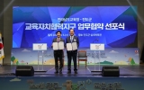 진도 코리아피플뉴스2025. 11.06[코리아피플뉴스]진도군은 지난 11월 5일에 전라남도교육청과 ‘전라남도 교육자치협력지구 운영 업무협약’을 체결했다고 밝혔다. 이번 협약식은 진도교육지원청에서 주최하는 ‘2025 보배섬 진도 글로컬 교육축전’이 열리고 있는 진도실내체육관에서 진행됐으며, 김희수 진도군수, 김대중 전라남도교육감, 박금례 진도군의회의장과 군의원, 전라남도교육청과 진도교육지원청 관계자, 학부모, 학생들이 참석했다. 이번 협약은 지역사회와 학교가 함께 성장하는 지속 가능한 교육생태계를 구축하는 것을 목표로 한다. 업무협약의 주요 내용은 ▲교육 발전과 지…