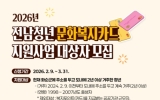 교육 코리아피플뉴스2026. 03.25[코리아피플뉴스]화순군은 지역 청년들의 자기 계발과 문화생활 기회를 확대하기 위해 ‘2026년 전남 청년 문화복지카드 지원사업’ 대상자를 오는 3월 31일까지 모집한다고 밝혔다. 이 사업은 청년들에게 도서, 영화, 공연, 학원 수강, 체육시설 이용, 여행 등 폭넓은 문화·복지 활동을 지원하여 지역 정착을 돕는 사업이다. 선정된 청년에게는 1인당 연 최대 25만 원의 체크카드 포인트가 지급된다. 지원 대상은 현재 화순군에 주소를 두고 2024년 2월 9일 이전부터 도내에 2년 이상 거주한 청년으로, 1998년부터 2007년 사이…